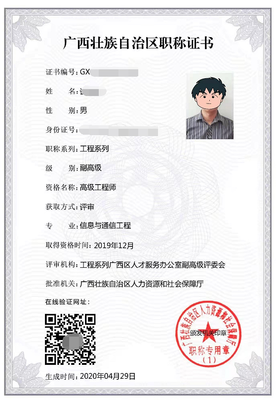 廣西職稱評(píng)審證書樣本-全國(guó)通用